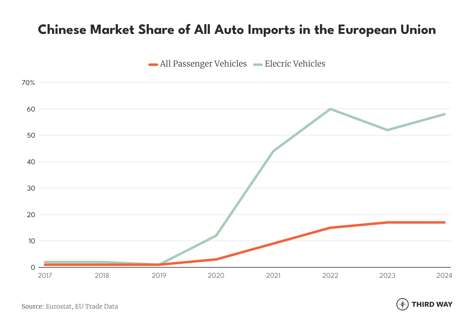 That explosive growth has created massive overcapacity in China’s domestic auto industry, forcing manufacturers to aggressively and successfully expand overseas. In Europe, for example, one in in ten cars sold today is now made by a Chinese brand – up from virtually nonexistent levels a decade ago.
