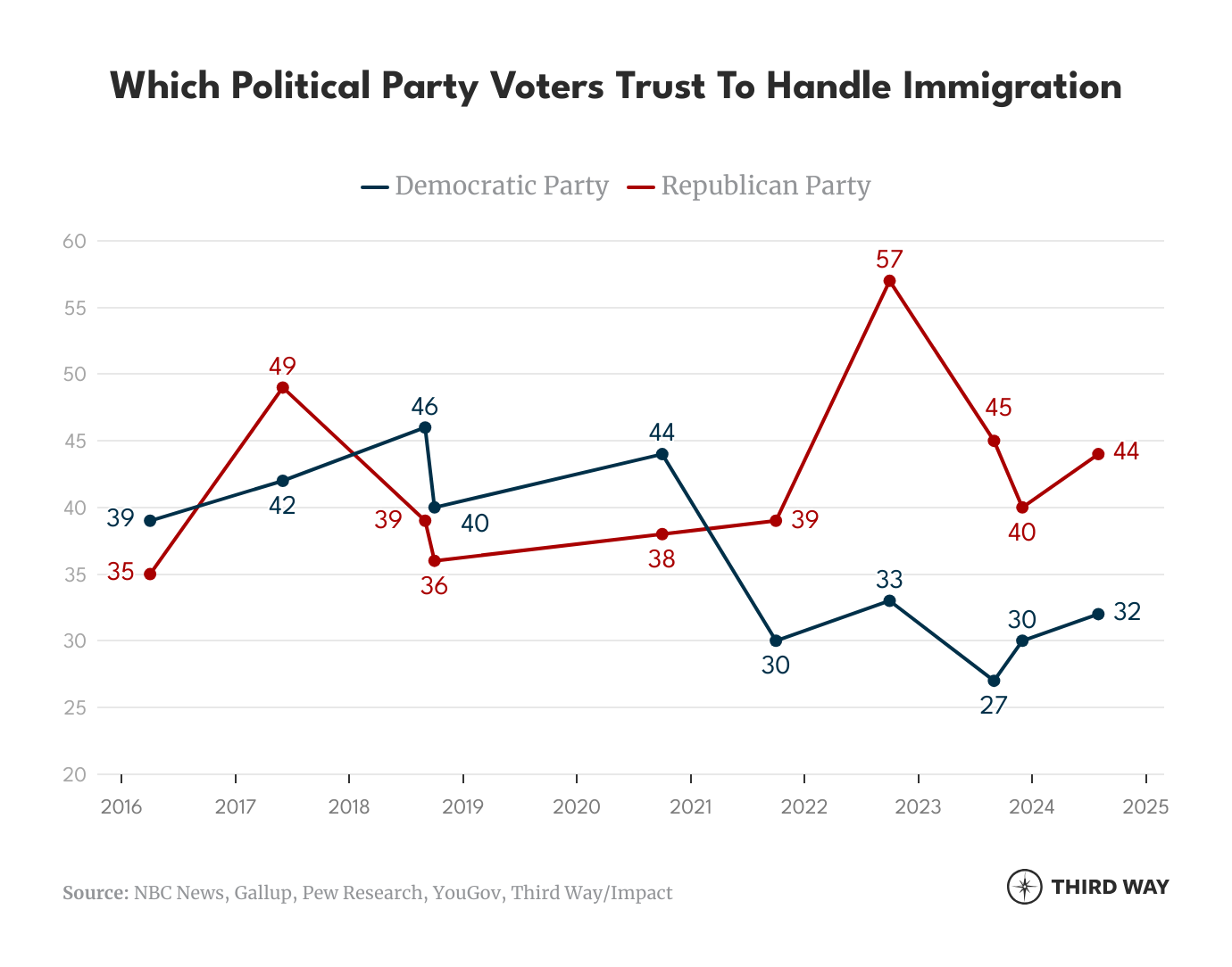 Democrats have not just lost the policy and messaging fights on immigration over the last decade—they’ve lost something deeper: the public’s trust that they can competently govern on this issue. That trust deficit, more than any border surge or errant talking point, is what has put Republicans in the driver’s seat. The good news is that trust can be rebuilt—by starting with policies that feature control, accountability, and tangible benefits for American workers, families, and communities.