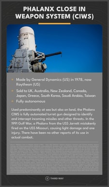 It is hard to imagine any international rule that will conclusively resolve common sense humanitarian concerns with autonomous weapons. An intuitive requirement that every “autonomous” weapon must be fired manually will simply not work for missile defense systems like the Phalanx CIWS.4 The Iran Air Flight 655 disaster at the hands of a human-supervised Aegis combat system furthermore underscores that this human review would be no guarantee of better results.5