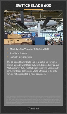To better understand whether advances in AI and weaponry will make warfare more or less humane, it is more useful to learn what lethal autonomous weapons there are than it is to hear what any one person thinks about them. For that reason, this product emphasizes exposition over analysis and policy recommendations.