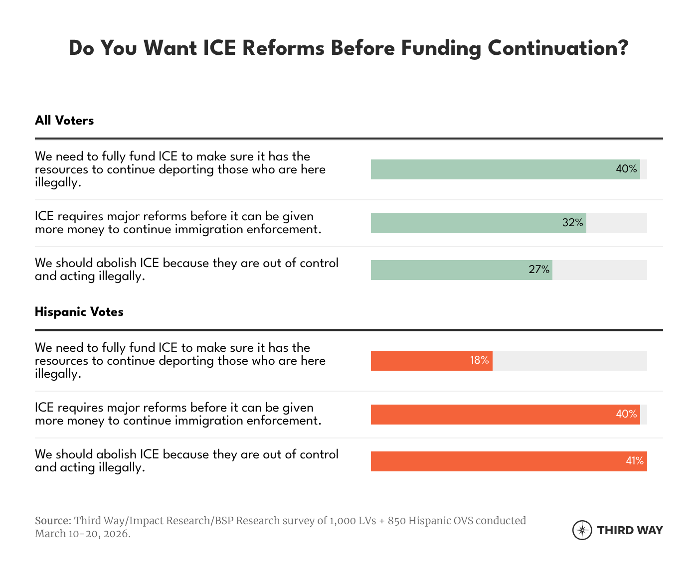 - There is widespread support for the entire range of reforms to ICE that are being considered by policymakers, and voters want to see those reforms enacted before the agency gets any more funding.