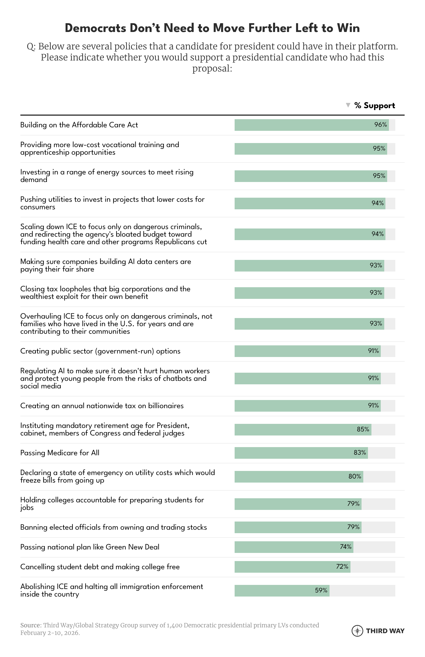 The lesson here should be that Democratic candidates need not embrace a litany of far-left ideas to woo primary voters. No doubt, there will be a far-left lane that some candidates occupy, and a decent proportion of voters in the primary may find those takes appealing. But there’s an even broader appetite for ideas that unite the coalition—and enable a candidate to win in a general election.