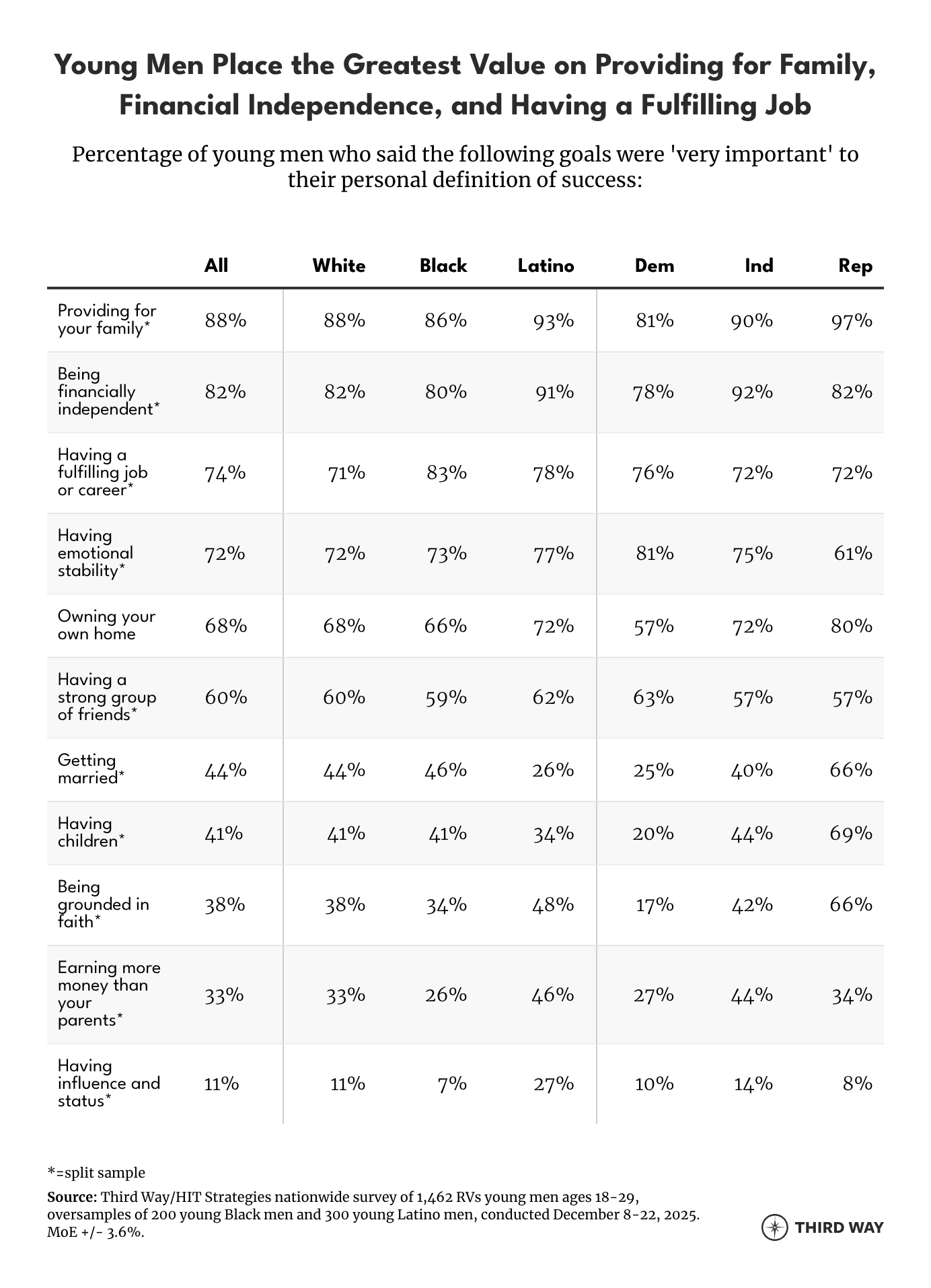 - When it comes to personal success, young men place the greatest value on providing for a family and financial independence—priorities most associated with Republicans.