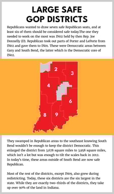 Indiana didn’t lose any districts during reapportionment, and Republicans instituted a gerrymander in their favor in 2012. While it helped them pick up one seat, this district almost certainly would be considered safely GOP under the old lines in today’s political environment.