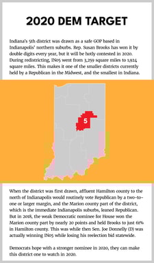 Indiana has had nine districts for both of the last two decades. In 2006 and 2008, Democrats won three of the larger districts in the state and held a five to four advantage in the delegation. In 2010, Republicans picked up two districts, and after redistricting they have held a consistent seven to two advantage in the delegation, with no districts flipping under the new maps. Heading into the 2020 elections, Democrats hold the two smallest districts in Indiana while Republicans hold the seven largest districts.