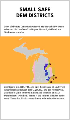 Heading into the 2020 elections, Democrats hold the seven smallest district in Michigan while Republicans hold the seven largest districts. Republicans control the same number of districts now as they did after 2008 (seven each time), but the amount of total land they represent has more than doubled from 24,036 to 51,306 square miles.