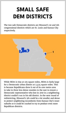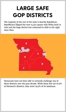 In Missouri, Democrats hold the smallest and third smallest district, while Republicans hold the rest. However, it is the second smallest district in Missouri that is the smallest in the Midwest with a Republican incumbent and Democrats think they have a shot of picking up.