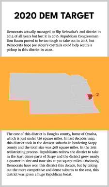 Nebraska is home to both the third largest district in the Midwest overall and the second smallest held by a Republican after 2018. Republicans got to draw the maps and drew the Omaha-based district in a way that could favor them, without cracking the main county.