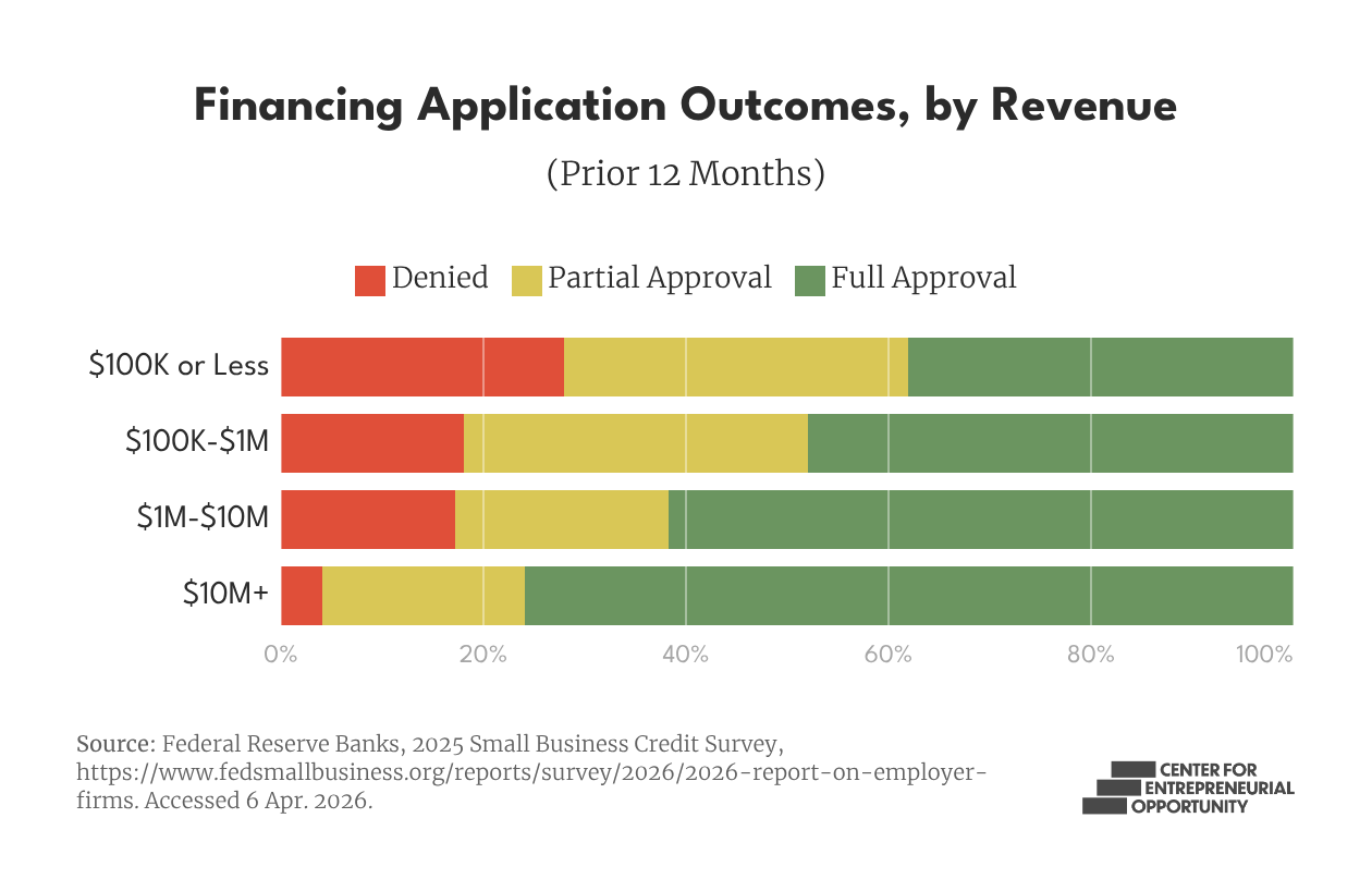 Many mid-revenue firms ($1 million-$10 million) that apply for financing receive less than they request or are denied entirely. Among those reporting difficulty accessing affordable capital, roughly half delayed or halted expansion plans as a result.4